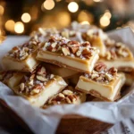 - Add the Toppings: Sprinkle chopped toasted pecans and flaky sea salt over the white chocolate, allowing them to adhere.